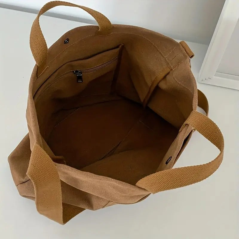 Découvrez le grand sac à main pour cours en tissu, disponible en trois coloris : beige, gris et kaki. Conçu en coton pour un aspect naturel et sobre, ce sac est parfait pour transporter vos affaires de cours avec style. Que vous le portiez à la main, à l'épaule ou en bandoulière grâce à sa bandoulière réglable, il s'adapte à toutes vos préférences. Sa fermeture à bouton pression assure à la fois praticité et sécurité, tandis que son intérieur spacieux peut accueillir vos livres, cahiers, ordinateur portable, et plus encore.